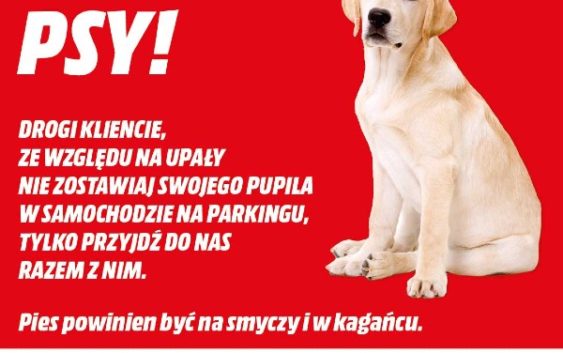 Upały są uciążliwe dla ludzi, ale mogą być także niebezpieczne dla zwierząt. W ramach akcji „Witamy Psy!” MediaMarkt apeluje, aby nie zostawiać psów w samochodach. Sieć zaprasza właścicieli z czworonogami do sklepów, gdzie czeka miska z wodą.