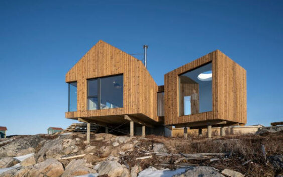 Zaprojektowany i zamieszkany przez nowojorskiego architekta Kingmana Brewstera dom na wyspie Fogo został częściowo osadzony na palach, dzięki czemu wydaje się unosić nad skalistym krajobrazem. Budynek o drewnianej elewacji nawiązuje do miejscowego budownictwa, a jednocześnie ma zaskakująco modernistyczny charakter. Otaczają go mroźny krajobraz i charakterystyczna zabudowa wyspy złożona z niewielkich drewnianych domów na palach, które są otoczone pomostami tworzącymi wspólne trakty komunikacyjne. Kolejnym nawiązaniem w architekturze domu do lokalnej tradycji są niewielkie boczne kwadratowe okna, które od wewnątrz wyglądają niczym białe ramy dla rozległych śnieżnych pejzaży. Natomiast duże przeszklenia oraz systemy przesuwne zapewniają niczym nieograniczony widok i wpuszczają maksymalną dawkę światła. Zastosowana w projekcie kombinacja stolarki Schüco z PVC-U i aluminium okazała się być perfekcyjnym rozwiązaniem.