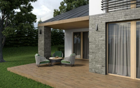 Drewnopodobne płytki mogą być też zastosowane do wyłożenia cokołów budynku. W takim przypadku najlepiej zdecydować się na ciemniejszy model, np. płytki elewacyjne Grapia ebano lub na czarny kamień elewacyjny Tacoma Steel lapatto . Płytki gresowe mogą być również użyte do wykończenia podłóg oraz wnęk tarasu i balkonów. Z powodzeniem sprawdzą się jako materiał wykończeniowy słupów wspierających zadaszenia. Kamień elewacyjny warto także wykorzystać w przestrzeniach funkcjonalnych, takich jak miejsce do grillowania czy wiata garażowa.