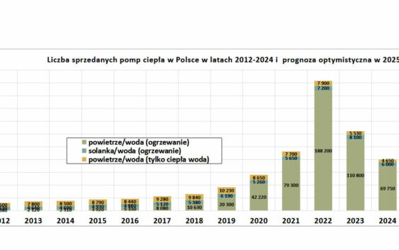 • pompy ciepła powietrze-woda do centralnego ogrzewania (i c.w.u.) około 70 tys. – spadek o 37% w stosunku do 2024 r.;